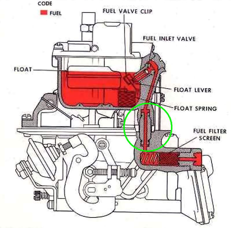 im Vergaser hoch zum Schwimmernadelventil und zur Kammer. Der Stöpsel verbindet