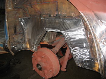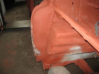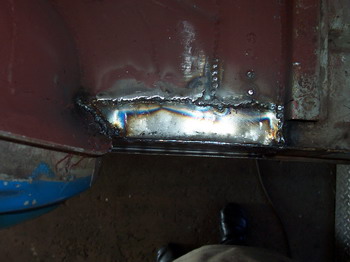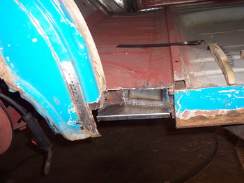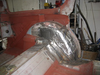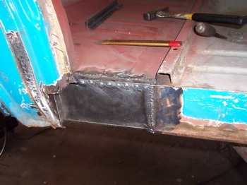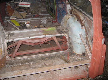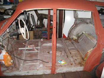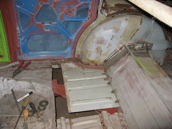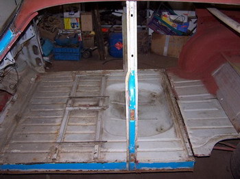 17.08.2007: Schweissen und braten an der Karosse! Teile des Bodens nehmen wir aus dem Blauen.