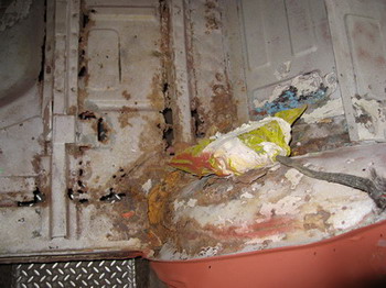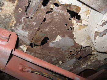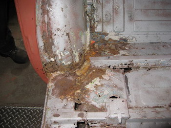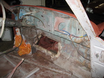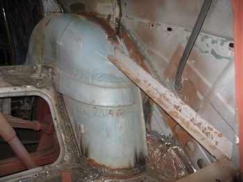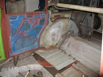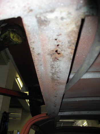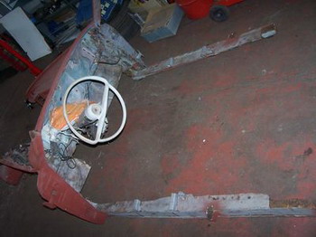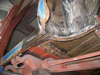 Von der rechten A-Säule ist auch mehr als erwartet stehengeblieben. Dafür ist das Bodenblech um so schlimmer.