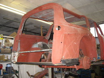 23.03.2007: Die linke A-Säule ist erstmal eingeschweisst...